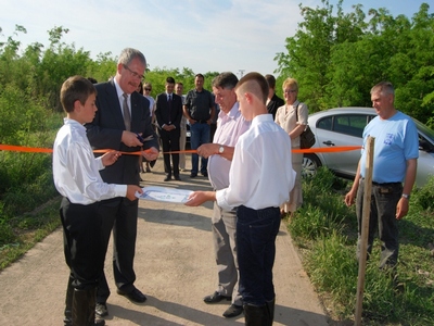 A települések 2002 óta tartó együttműködés jeléül a művelődési otthon előtt elültették a barátság fáit.