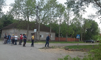 A faluban tegnap az emberek és a kotrógép szinte egész nap a Kossuth Lajos utcában birkóztak a vízzel, Kovács István helyi tanácstag illetve Kocsis Róbert, a helyi és a községi tanács tagjának vezetésével. Több utcabeli segédkezett, közöttük Matyis István is, akinek háza az utca legalacsonyabb pontján van.