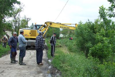 Mindkét faluban a DTD közép-bánáti vízgazdaság gépei és emberei segítenek abban, hogy a rengeteg víznek minél előbb szabad lefolyást biztosítsanak.