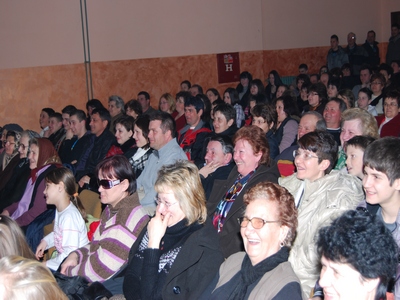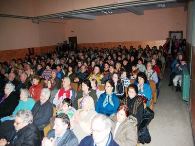 Már a főpróbák során is nagyon jól fogadta a közönség az előadást így hát biztosítva volt a siker a terepen is. Hozzánk Tiszaszentmiklósról érkezett a huszonöt fős társulat és szállásfoglalás után a művelődési házban egy kis pihenő következett, majd nagy lelkesedéssel kezdtek hozzá a színpad fölállításához a helyi szövetkezet tágas udvarában. Az esti előadásra meglepően sokan jöttek el, becslések szerint mintegy hatszázan, nemcsak helyből, hanem Magyarcsernyéről, Tóbáról, Bánáttopolyáról,Kisoroszról, Tamásfalváról, Udvarnokról és Szentmihályról is érkeztek. A közönség kitörő lelkesedéssel fogadta a Táborosi Margaréta által rendezett A falu rossza című átdolgozott produkciót. A lelkes nézősereg, úgyfiatal, mint idős egyaránt elfogadta és nagy tapssal jutalmazta a színészek teljesítményét, úgy a dalok, mint egyes jelenetek után is.
